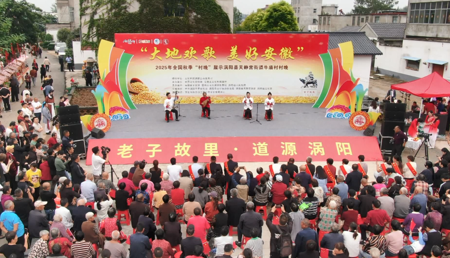 9月29日下午,由文化和旅游部公共服务司指导,中国文化馆协会、安徽省文化和旅游厅主办,安徽省文化馆、亳州市文化旅游体育局、涡阳县人民政府联合承办的“大地欢歌 美好安徽”2025年全国秋季“村晚”示范展示活动在我县天静宫牛庙村精彩上演。